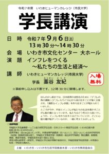 HOMEいわきヒューマンカレッジ(市民大学)学長講演チラシ