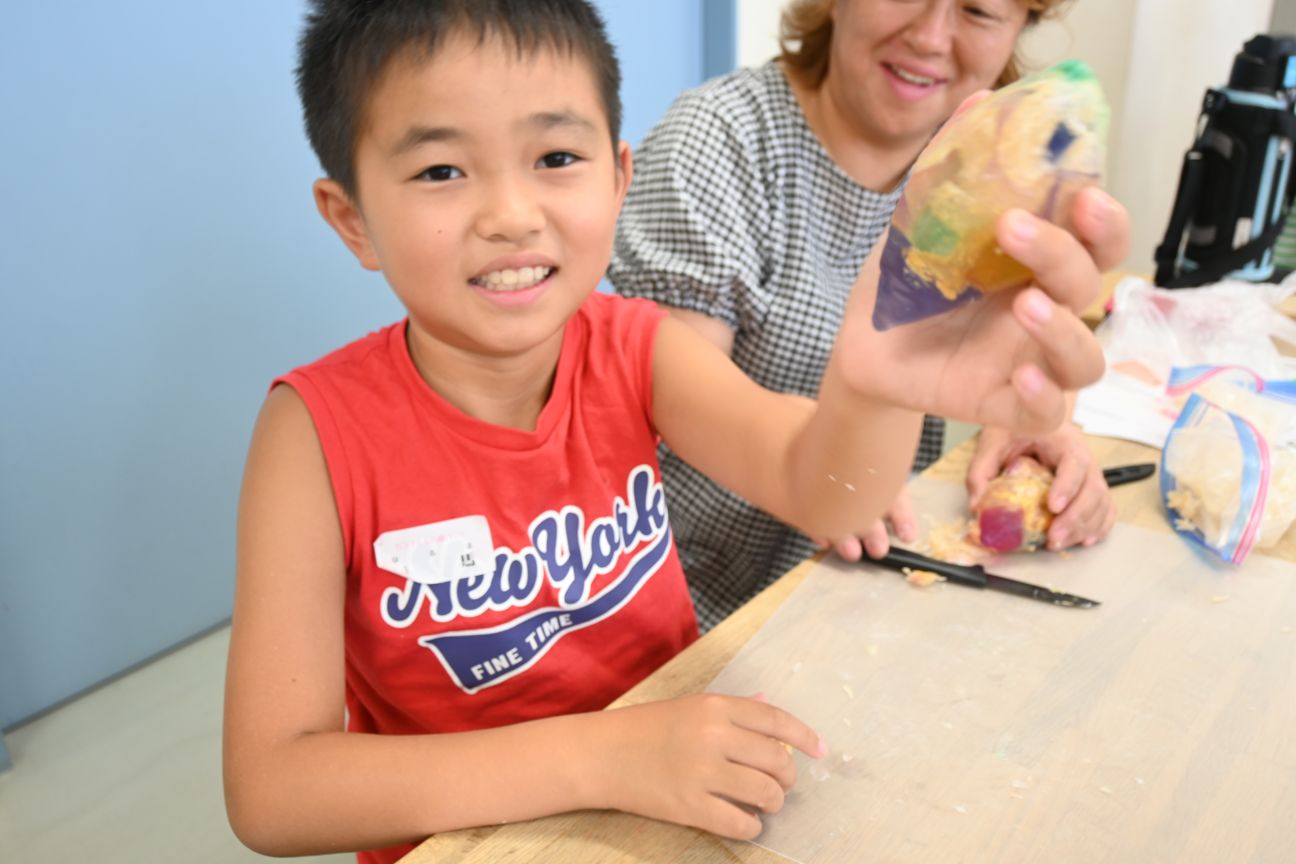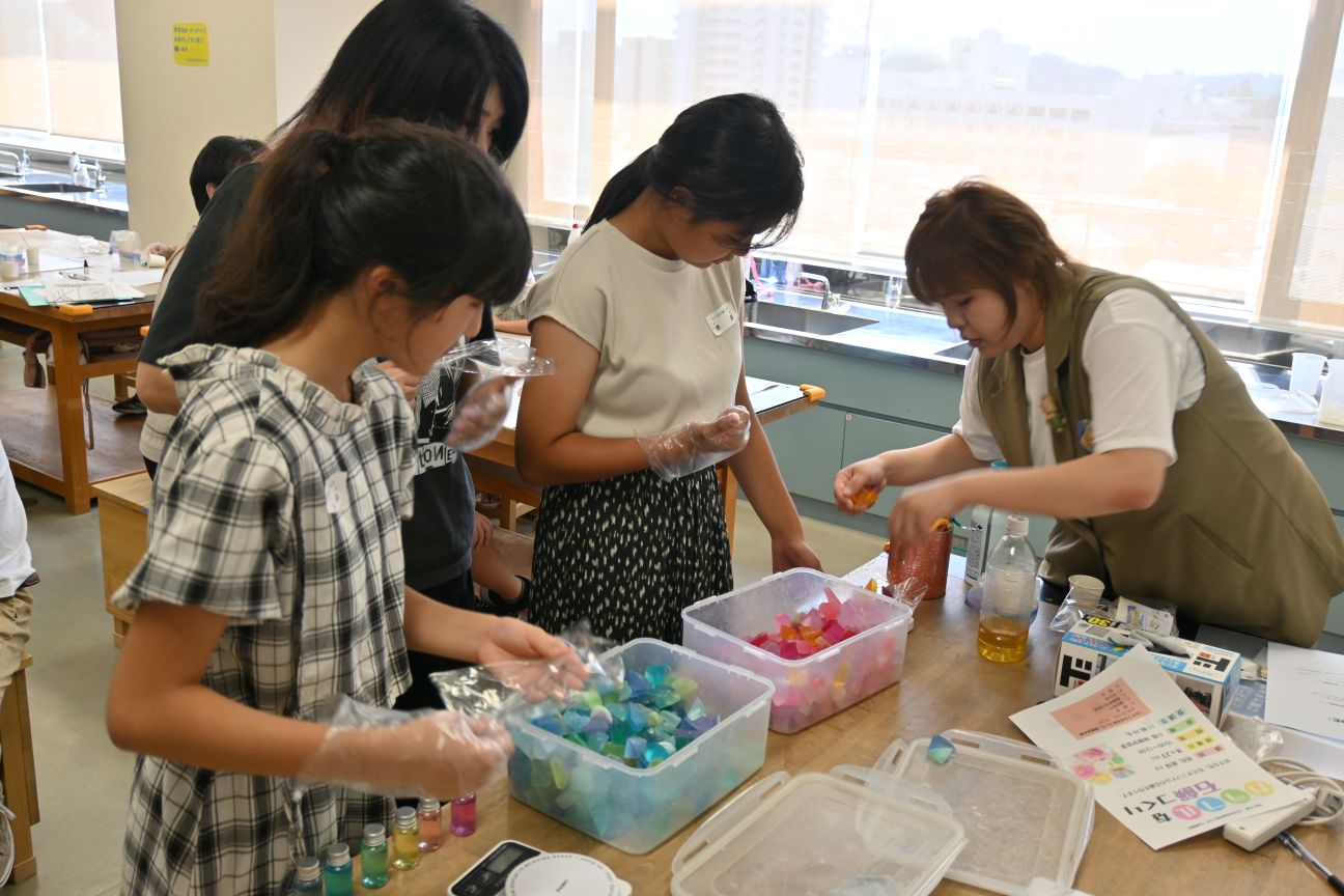 カラフルな石鹸づくり(R7.8.23) 主催講座 2025.10.12 講座の様子 淡いピンクや青色、黄色、黄緑色などの色がついた小さな石鹸を2~3個組み合わせ、カラフルな石鹸づくりに挑戦しました。子どもたちは、きれいな色の小さな石鹸を楽しそうに選び、石鹸同士が接着する不思議を感じながら、出来上がった宝石のような石鹸にみんな大喜びでした。 講座概要 開 催 日 令和7年8月23日(土) 10:00~12:00 場 所 5階 体験学習室 受講者 9組25名 受講対象者 小学生と保護者