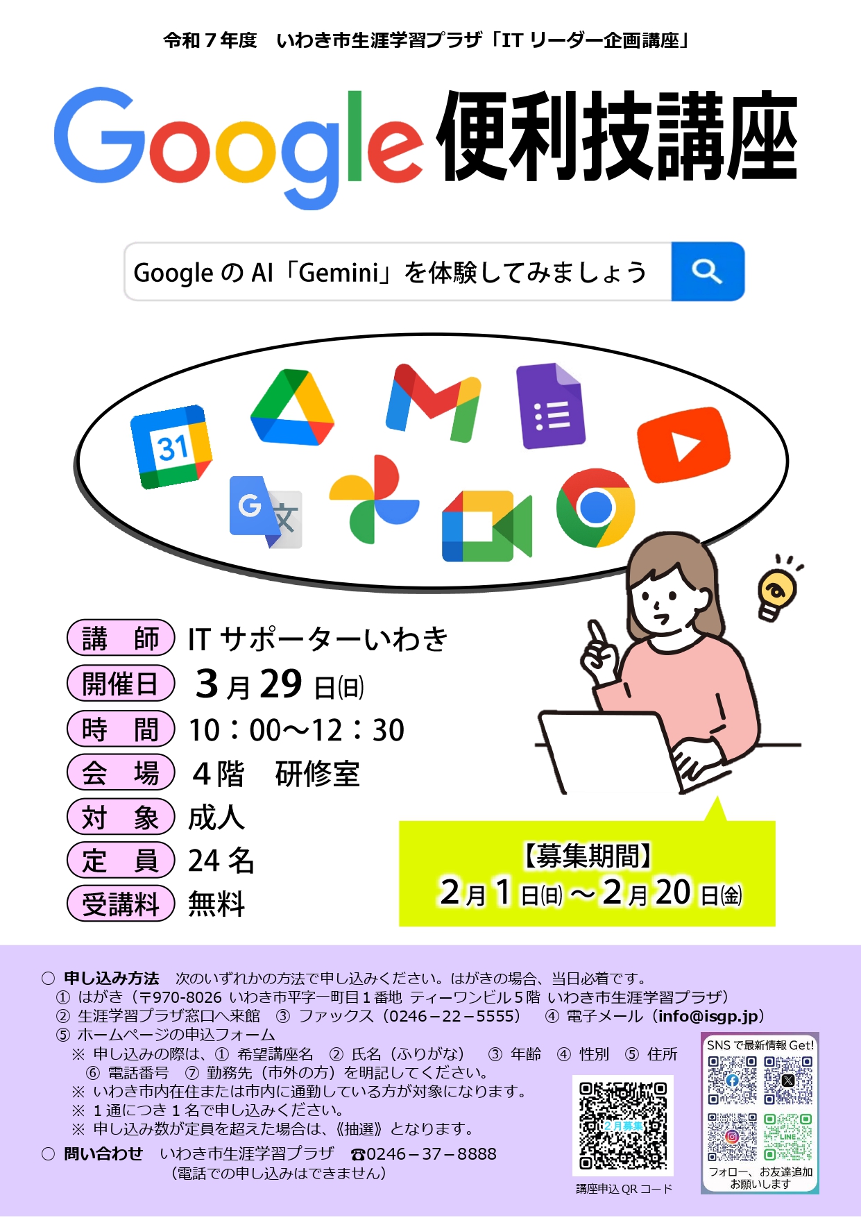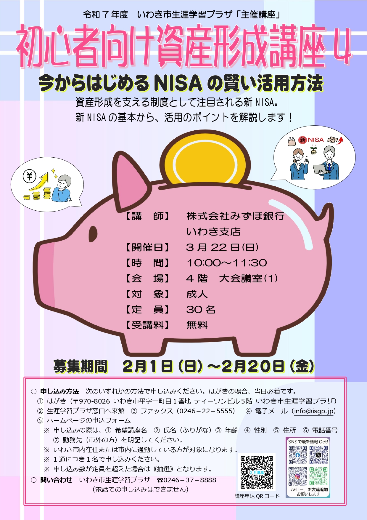 3月開講講座(2月募集講座)  申込期間:2/1(日)~2/20(金)