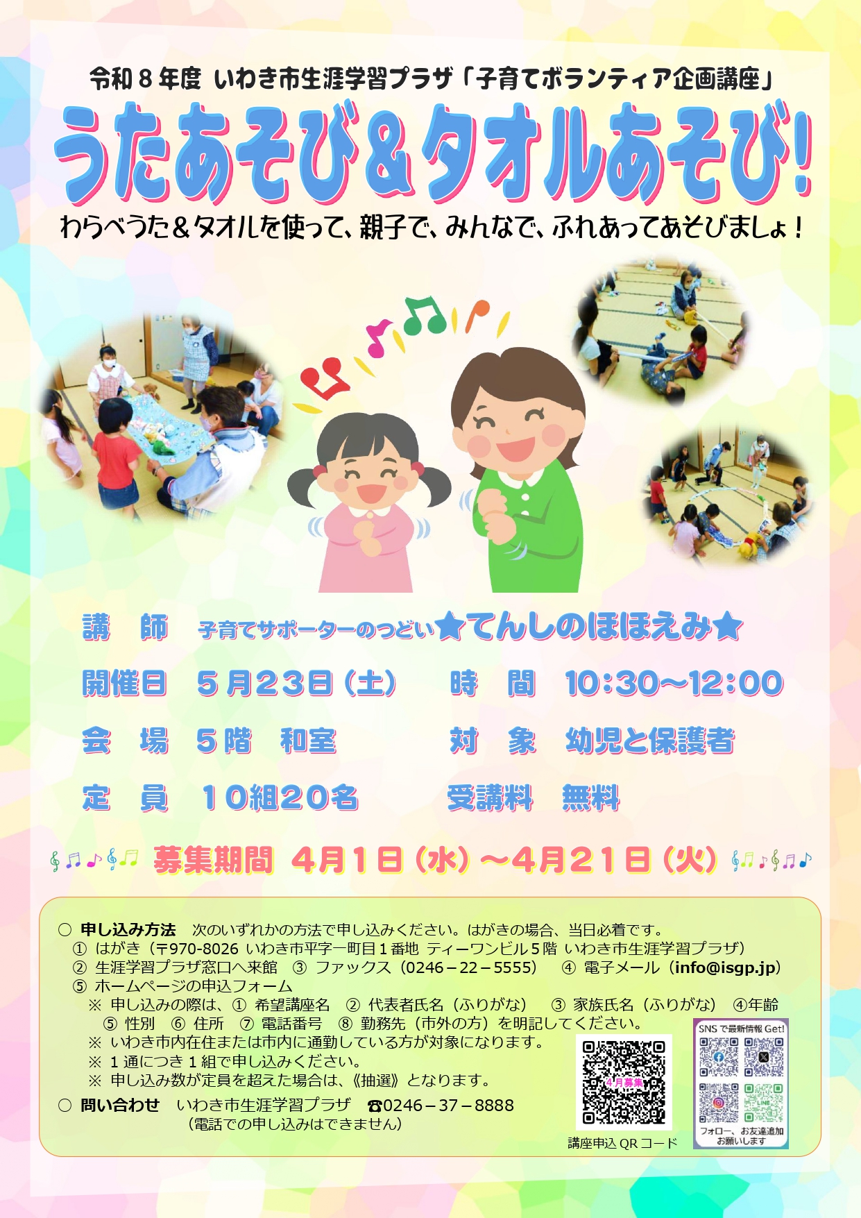 | わらべうた&タオルを使って、親子で、みんなで、ふれあってあそびましょ! | |||||||||||