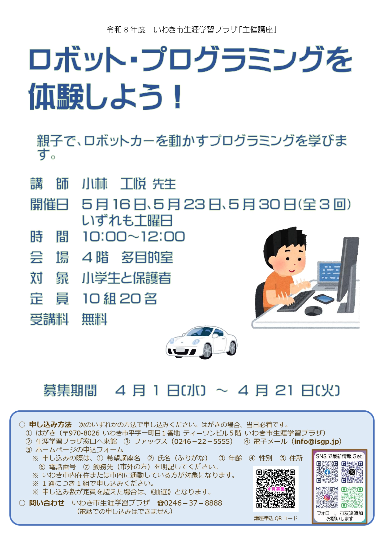 | 朗読講座1 | ロボット・プログラミングを体験しよう! | ||||||||||