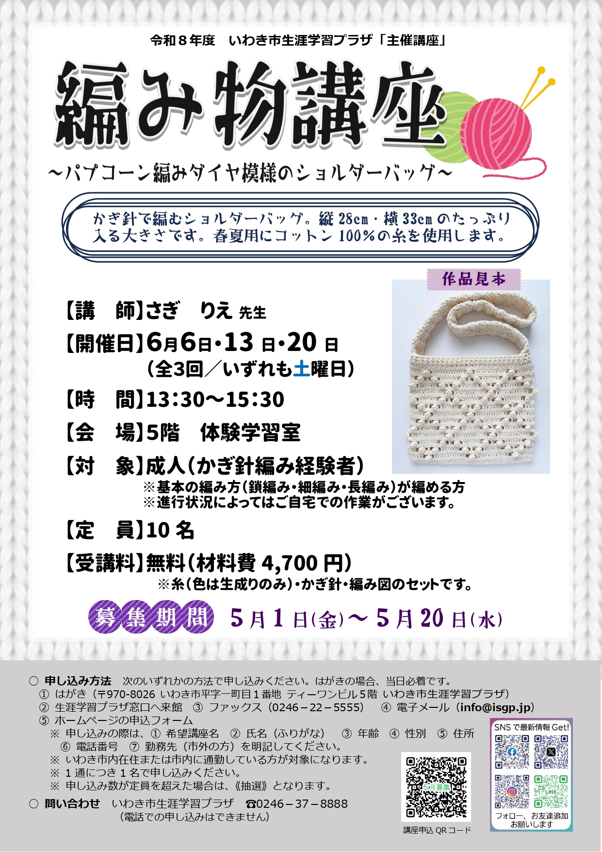 | 編み物講座 | いわきの弥生時代を知る | ||