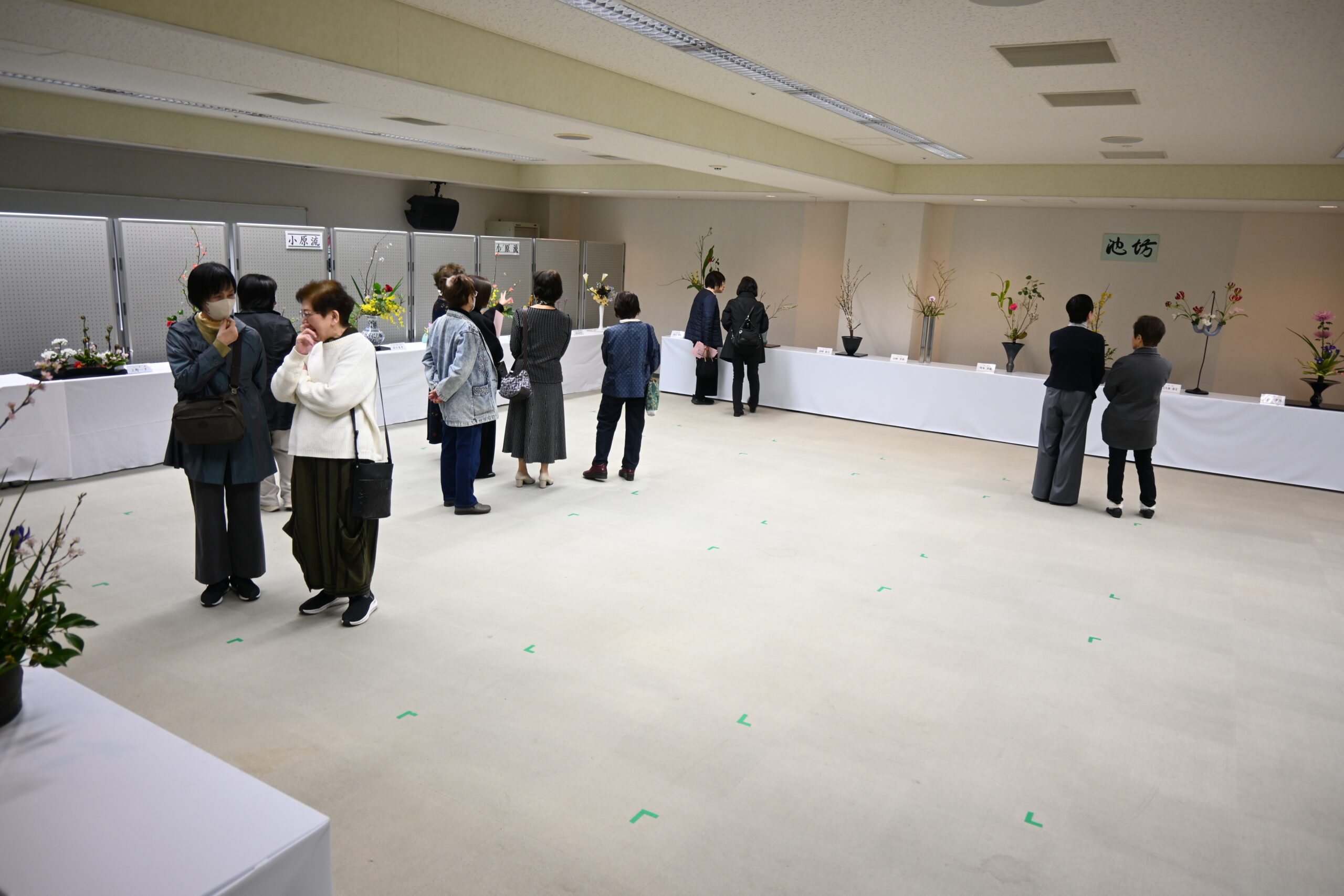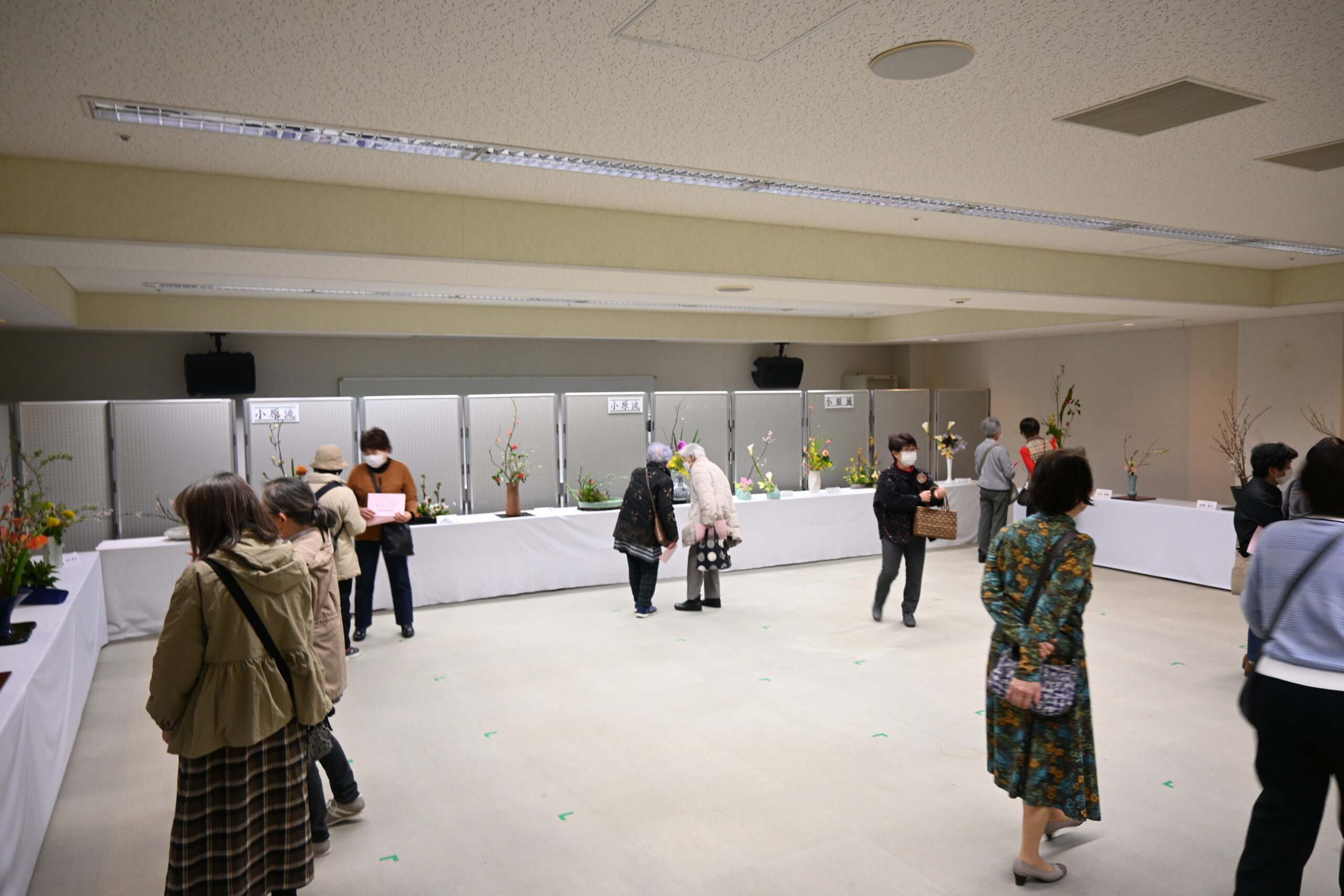 いわき市華道連合会の六流派が、プラザを舞台に一堂に集う貴重な機会であり、各流派趣の異なる作品が並ぶ圧巻の情景を来場者も大いに堪能していました。来場者数も昨年よりは2日目がやや落ち込んだもののほぼ例年通りの賑わいとなりました。