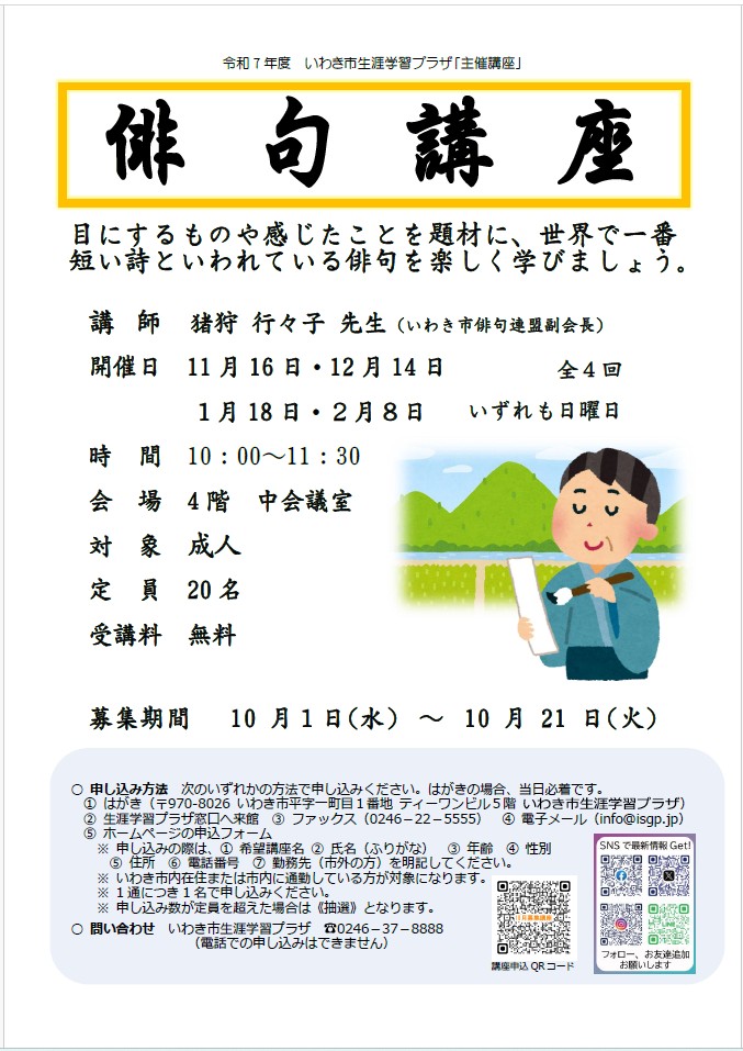 近代俳句の時代に至るまでの歴史を詳しく講義の中で学び、句会の進め方、投句や作品について詳しい説明や指導があり、充実した講義内容でした。また、最後に参加者の句を披露する句会を実施し、一つの句から多様な解釈が生まれる面白さを体験し、言葉の多義性や美しさへの理解が深まりました。参加者からは、素晴らしい時間を過ごせた、参加者たちの俳句に刺激を受けた、といった声が寄せられ、大変好評な講座でした。 |